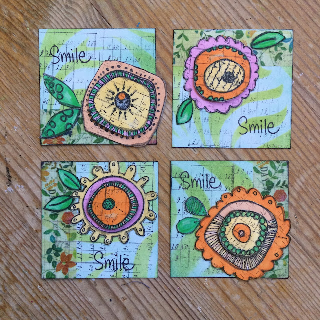 But here is one I have made using some autumnal colour Distress Inks in the inky background and went for a Halloween vibe with some Stampotique images which were coloured with Promarkers and watercolour pencil.